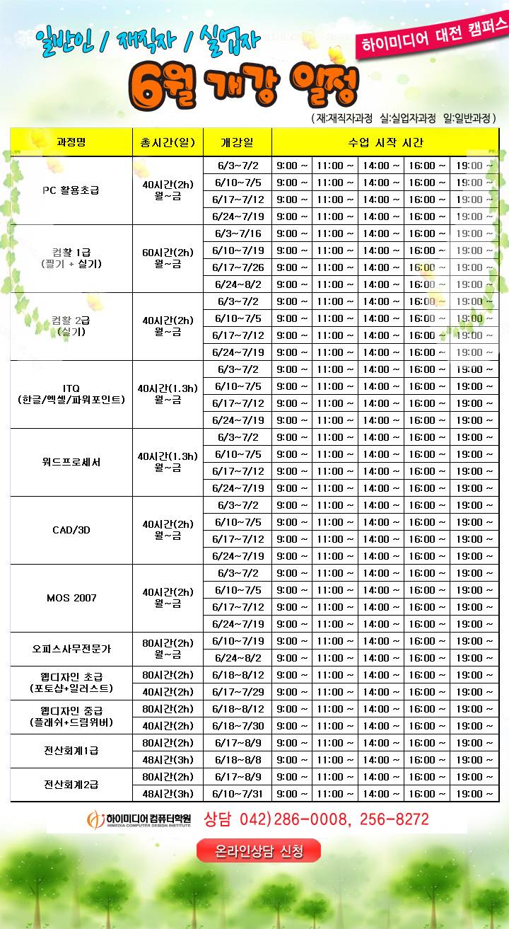 [정규개강]6월 과정 일정 안내입니다.-대전캠퍼스
